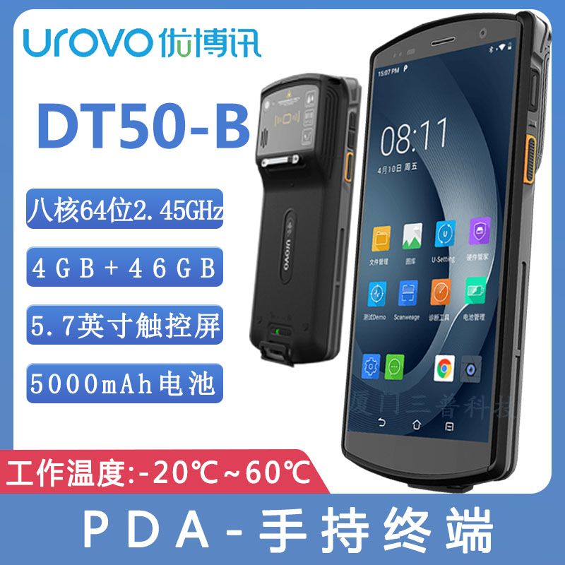 优博讯DT40是基于仓储、物流、制造等需要少量按键产品的行业而设计,产品外观时尚大方,在保证外观的同时,具有高可靠性的工业品质,企业级的安全保证。成熟的 8 核 A53 架构,优良的扫码模块,能大大提升作业人员的工作效率。键盘设计便于操作,可更换电池的设计,都使这款产品在方便性和续航上满足客户高强度使用需求。为满足不同企业的设备管理需求,我们打造了一系列企业级管理工具,让用户更快的运用,更专业的工作。